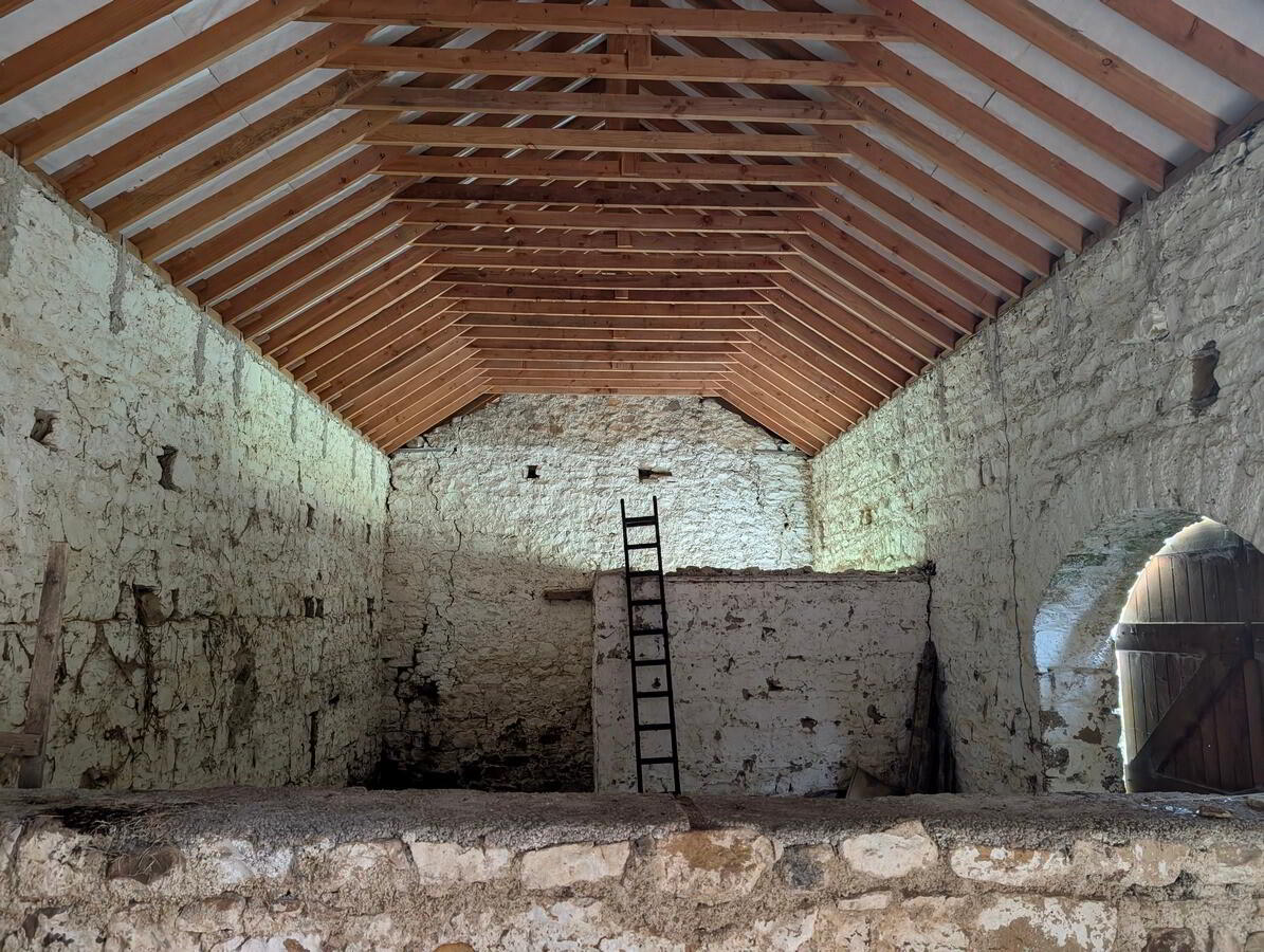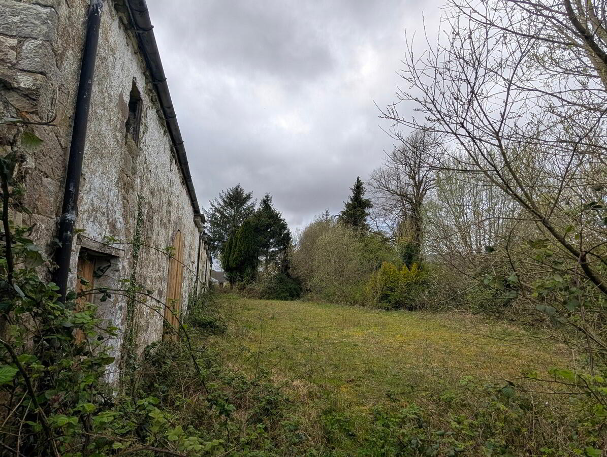 Accessed from the public road, through the gated entrance and along the C. 50 metres private drive, the site opens up into a large level courtyard with the main stone building occupying a central position. To the rear of this is a larger garden area, currently covered in semi-natural vegetation.