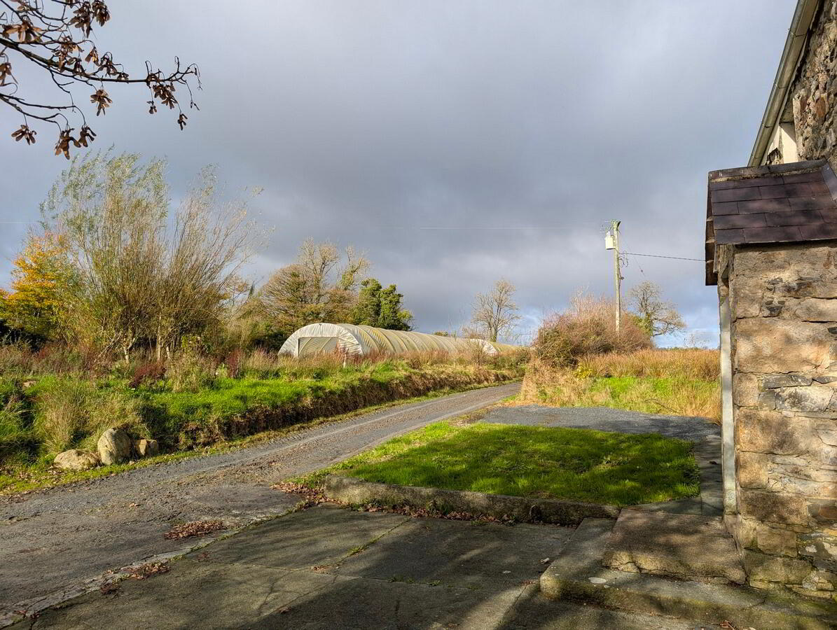 There are 2 larger fields behind the house. To the front of the house is a yard area providing ample parking. Leading from the yard to the road is the 3rd, narrow field with willow ring & 2 large, fully functional polytunnels.
